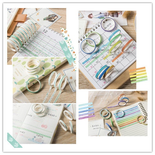 Basic Color Slim Washi Tape Set 10 Rolls, 5mm Wide 2 Meter Long, Retro Floral Rainbow Washi Tapes, Cute Thin Tapes, great for adding pattern and color to your journal, planner, scrapbooking, and any craft projects. Also perfect in decorating cards, gift bags, gift tags, and gift wrapping too!